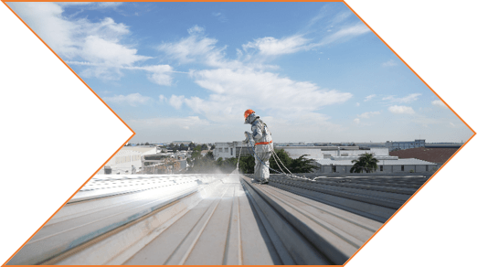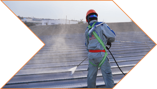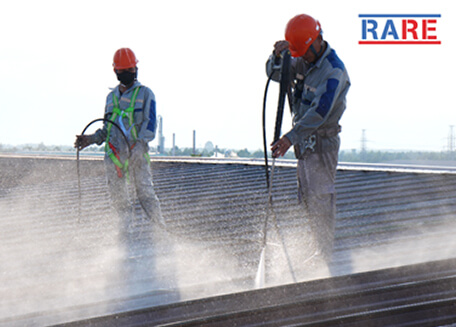 Loại bỏ bụi bẩn, rong rêu, dầu mỡ bám dính trên bề mặt bằng máy rửa cao áp kết hợp cây chổi lau, giẻ lau để làm sạch bề mặt mái. Chờ khô hoàn toàn