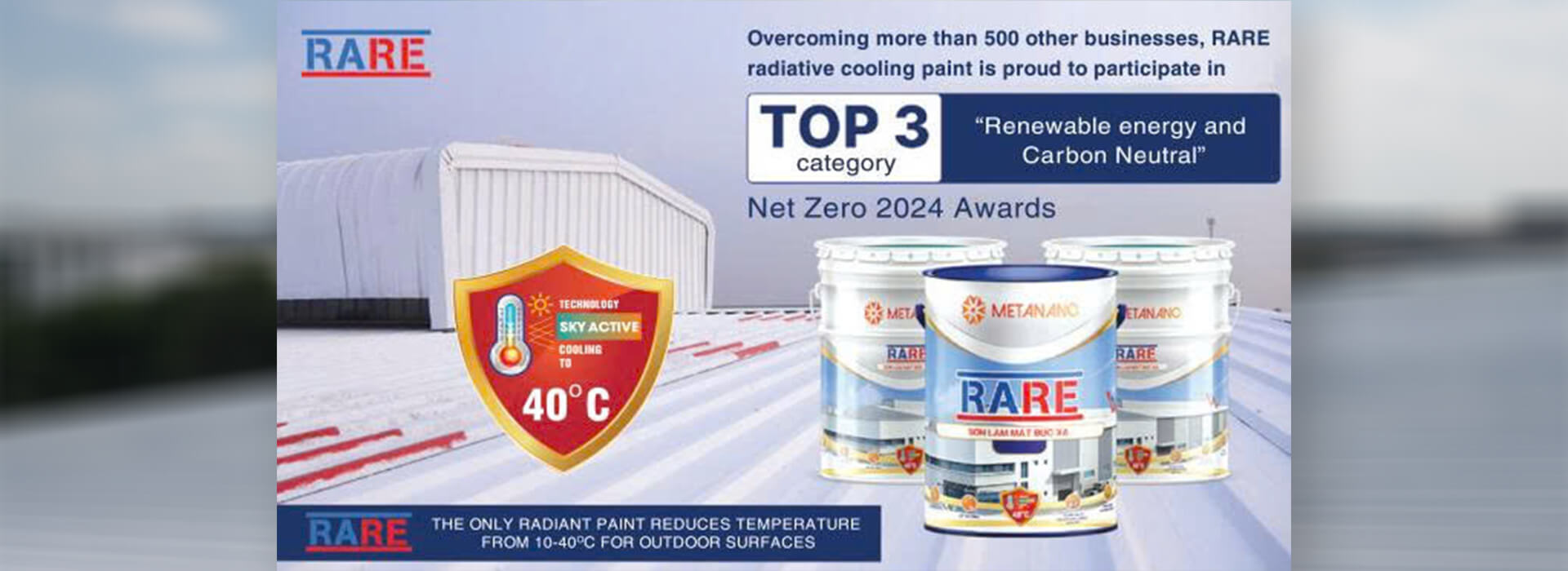 Metanano Vietnam Group Joint Stock Company (Metanano) is a pioneer in the research, manufacturing, and application of RARE radiative cooling paint – an innovative solution that reduces building temperatures, improves energy efficiency, and enhances operational performance.